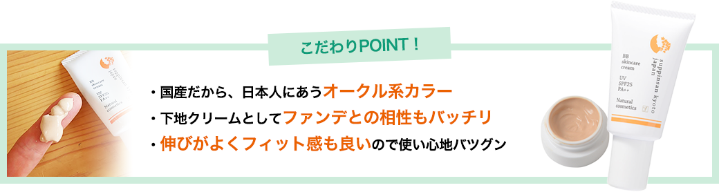 初めて京のすっぴんさん素肌色クリームを使わせていただいた時に驚いたのは、肌にやさしいだけではなく、ナチュラル成分だけで作った時の使いにくさが無く、伸びが良くムラにならない、顔色がくすまない、自然な仕上がりで毛穴が目立たない、化粧崩れが気にならないなどの利点が多くありました。