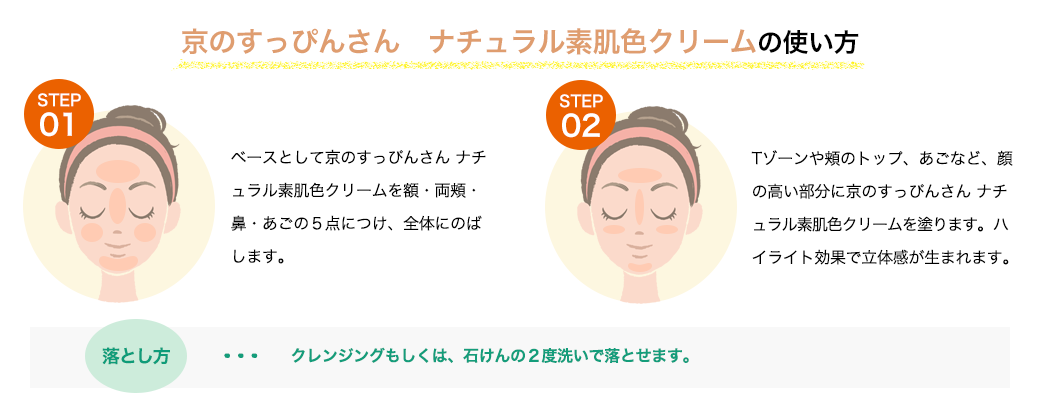 「京のすっぴんさん ナチュラル素肌色クリーム」は、肌への負担を出来るだけ楽にするため、植物成分の働きで肌の水分を